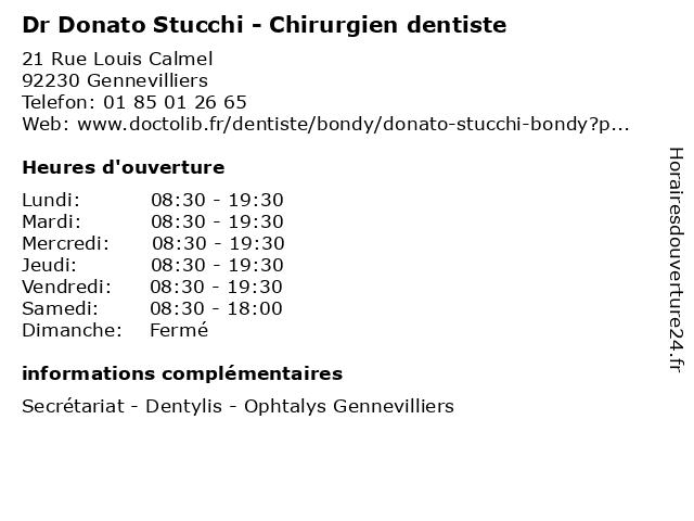 1 Maître Donato Sirignano - Avocat (Distance: 5,35 km) 155 Boulevard Malesherbes, 75017 Paris avocat, avocats, cabinet, conseils, contentieux, donato, juridique, justice, litiges, maître, services, sirignano 2 Maître Martin Donato - Avocat (Distance: 5,78 km) 146 Boulevard Haussmann, 75008 Paris avocat, avocats, cabinet, conseils, contentieux, donato, juridique, justice, litiges, martin, maître, services 3 Dr Laura Di Donato - Chirurgien-dentiste (Distance: 6,57 km) 17 Rue de la Tremoille, 75008 Paris chirurgien, dent, dentiste, di, didonato, docteur, donato, dr, esthétique, laura 4 Maître Olivia Donato - Avocate (Distance: 7,25 km) 219 Rue Saint Honoré, 75001 Paris avocate, avocats, cabinet, conseils, contentieux, donato, juridique, justice, litiges, maître, olivia, services 5 L'Atelier de Donato (Distance: 7,34 km) 207 Rue Saint-Honoré, 75001 Paris beaute, coiffure, coiffures, colorations, coupes, de, donato, l'atelier 6 Dr Maria-Lydia Mastronikolou - Chirurgien-dentiste (Distance: 0,00 km) 21 Rue Louis Calmel, 92230 Gennevilliers chirurgien, dentaire, dentiste, dr, implantologie, lydia, maria, mastronikolou, parodontologie |