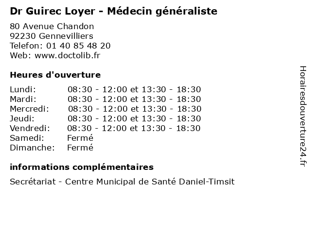 | Lundi | 08:30-12:00 et 13:30-18:30 |