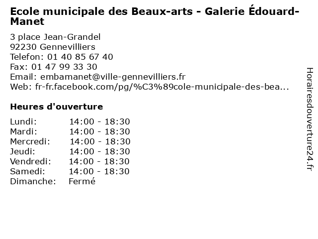 | Samedi | 14:00-18:30 |