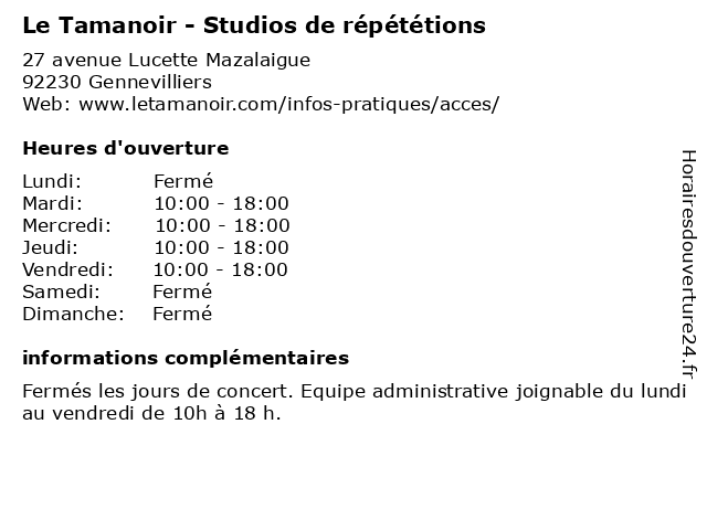 | Samedi | Fermé |