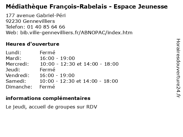 Termes de recherche pour Médiathèque François-Rabelais - Espace Jeunesse:francois, espace, horaires, livres, rabelais, jeunesse, mediatheque, revues, cd audio, cd.rom |