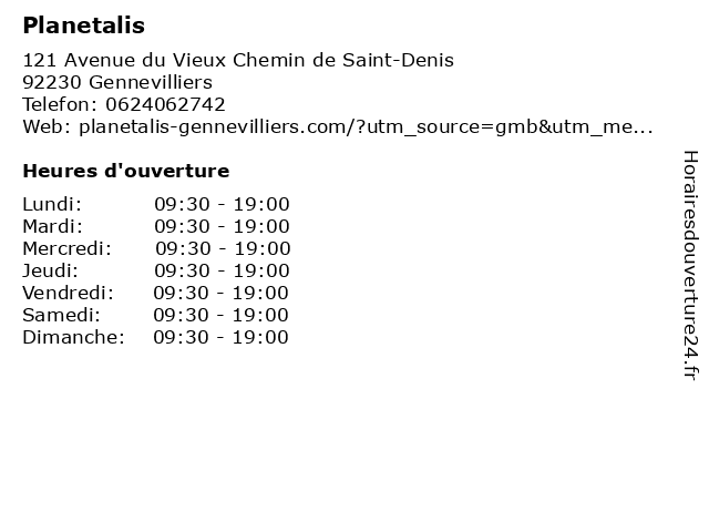 1 Planetalis (Distance: 5,12 km) 15 rue Hispano Suiza, 92270 Bois Colombes bistrot, planetalis, restaurant 2 Planetalis (Distance: 12,65 km) 7 rue de Lisbonne, 93561 Rosny sous bois bistrot, planetalis, restaurant 3 Planetalis (Distance: 25,94 km) 5 Allée des Pluviers, 78390 Bois-d'Arcy boisson, burger, planetalis, restaurants, salade 4 Le Diplomate (Distance: 1,71 km) 60 Rue Pierre Timbaud, 92230 Gennevilliers bar, bistro, bistrot, brasserie, café, diplomate, le, restaurant, restauration 5 L'Ivoire Gourmand (Distance: 2,02 km) 1 Quai du Port, 93200 Saint-Denis bar, bistro, bistrot, brasserie, café, gourmand, l'ivoire, restaurant, restauration 6 Restaurant Côté Canal (Distance: 2,04 km) 56 Rue Ambroise Croizat, 93200 Saint-Denis bar, brasserie, café, canal, cote, côté, madame, marie, restaurant, restaurants, restauration |