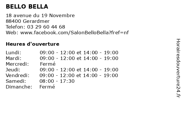 | Mardi | 09:00-12:00 et 14:00-19:00 |