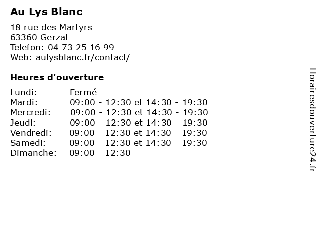 | Samedi | 09:00-12:30 et 14:30-19:30 |