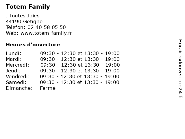 | Samedi | 09:30-12:30 et 13:30-19:00 |