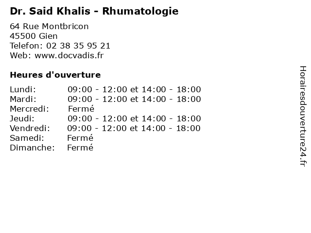 | Lundi | 09:00-12:00 et 14:00-18:00 |