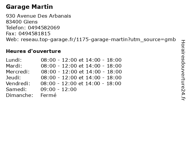 Lundi | 08:00-12:00 et 14:00-18:00 |