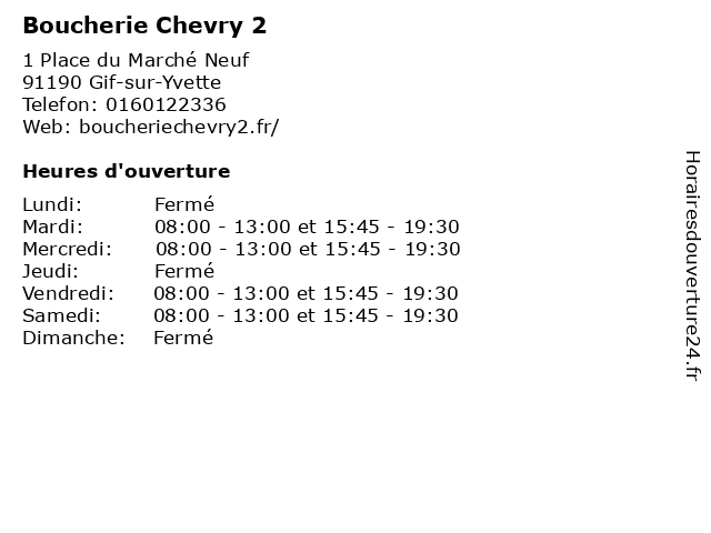 2 Agence immobilière l'Adresse Gif-sur-Yvette Chevry (Distance: 0,10 km) 7 Place de Chevry, 91190 Gif-sur-Yvette agence, chevry, gif, immobilière, l'adresse, sur, yvette 3 Boucherie De Mondetour (Distance: 4,97 km) 40 Boulevard De Mondetour, 91400 Orsay boucherie, boucheries, mondetour, poissonneries 4 Boucherie Philippe Lehugeur (Distance: 5,64 km) 68 Rue de la division leclerc, 78460 Chevreuse boucherie, chevreuse, lehugeur, philippe 5 La Boucherie - Période de vacances (Distance: 6,40 km) - Aire de Limours, 91640 Briis-sous-Forges boucherie, de, la, période, restauration, vacances, viande 6 La Boucherie - Hors période de vacances (Distance: 6,40 km) - Aire de Limours, 91640 Briis-sous-Forges boucherie, de, hors, la, période, restauration, vacances, viande |