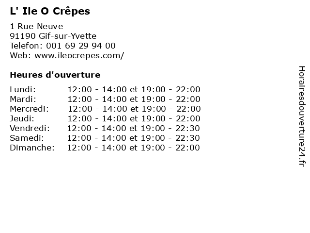 | Vendredi | 12:00-14:00 et 19:00-22:30 |