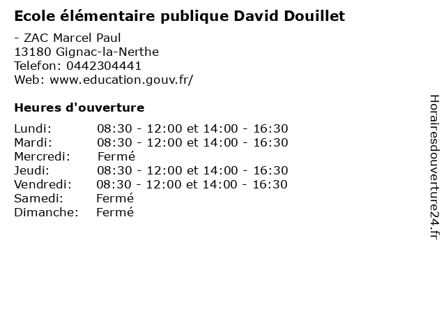 | Mardi | 08:30-12:00 et 14:00-16:30 |