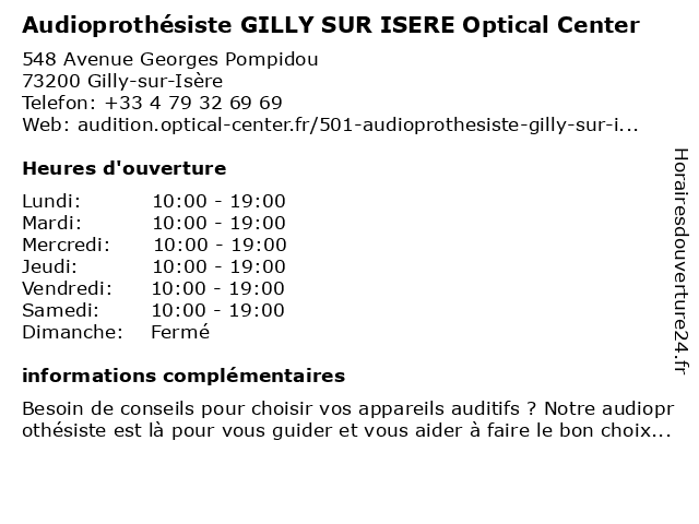 1 Opticien ALBERTVILLE - Optical Center (Distance: 0,09 km) 548 Avenue Georges Pompidou, 73200 Gilly-sur-Isère albertville, center, optical, opticien 2 GEMO GILLY SUR ISERE Chaussures et Vêtements (Distance: 0,20 km) Z.A. le Grand Pré, 73200 Gilly-sur-Isère bijoux et accesoires, chaussures, et, gemo, gilly, isere, lingerie, magasin bébé, maroquinerie, mode et habillement, sur, vêtements, vêtements bébé, vêtements enfant, vêtements femme, vêtements homme 3 Orchestra GILLY SUR ISERE (Distance: 0,31 km) 355 Avenue Georges Pompidou, 73200 Gilly-sur-Isère bébé, enfant, gilly, isere, mode, orchestra, prémaman, prêt à porter, puericulture, sur, vêtements 4 Audioprothésiste Albertville Audition Santé (Distance: 2,37 km) 24 Avenue Jean Jaurès, 73200 Albertville albertville, audioprothésiste, audition, santé 5 Audika - Audioprothésiste Albertville (Distance: 2,38 km) 22 Avenue Jean Jaurès, 73200 Albertville albertville, appareil auditif, audika, audiologiste, audioprothésiste, centre auditif, spécialiste audition 6 Jardiniers SAP Gresy Sur Isere (Distance: 10,62 km) 61 Place du Carroz, 73460 Grésy-sur-Isère gresy, isere, jardiniers, sap, sur |