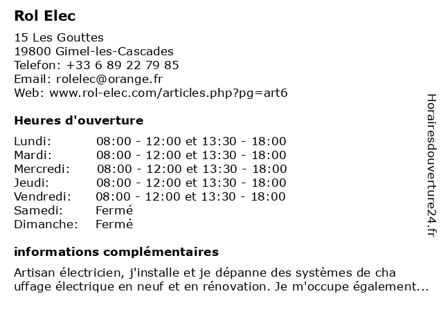 | Lundi | 08:00-12:00 et 13:30-18:00 |