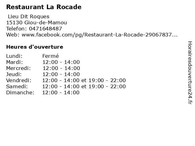 1 Restaurant La Rocade (Distance: 0,09 km) n/a Roques, 15130 Giou-de-Mamou aurillac, cuisine semi-gastronomique, la, restaurant, restaurants, restauration, rocade 2 Le Canotier (Distance: 3,07 km) 18 Rue du Buis, 15000 Aurillac bar, boissons, brasserie, canotier, culturelle, le 3 L'Excuse - Bar à Bières (Distance: 3,11 km) n/a Place Gerbert, 15000 Aurillac bar, bar à bières, bières, brasserie, l'excuse, restaurant 4 Brasserie Côté Rive (Distance: 3,13 km) 3 Cours Monthyon, 15000 Aurillac bar, bistrot, brasserie, café, côté, restaurant, restauration, rive 5 Bar-Brasserie La Fontaine (Distance: 3,30 km) 6 Rue Baldeyrou, 15000 Aurillac aurillac, bar, brasserie, fontaine, la, restaurant 6 Chiquito (Distance: 3,32 km) 1 Rue du Crucifix, 15000 Aurillac bar, brasserie, chiquito, loto, pmu, tabac  |