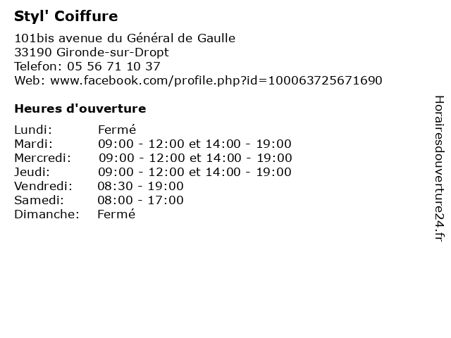 1 Coiffure Mary-Isa (Distance: 0,61 km) 88 avenue du Général de Gaulle, 33190 Gironde-sur-Dropt balayage, coiffeur, coiffure, coloration, coupe, isa, mary, mèches 2 Viva La Vie By Coiffure Aimée (Distance: 5,44 km) 10 Route départementale 113, 33490 Caudrot aimée, beauté, by, cheveux, coiffure, esthétique, la, salon, soins, vie, viva 4 Villa Cléopâtre Institut-SPA Coiffure (Distance: 12,26 km) 16 Avenue Arthur Gibaud, 33210 Langon cléopâtre, coiffure, institut, spa, villa 5 Attitude Coiffure (Distance: 12,51 km) 17 Rue Maubec, 33210 Langon attitude, barbier, coiffure, mixte, salon 6 Interview Coiffure (Distance: 12,55 km) - Cours du Quatorze Juillet, 33210 Langon coiffure, interview, salon |
