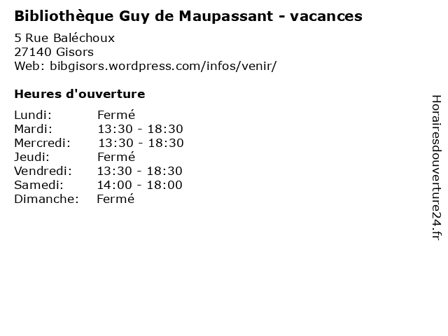 Termes de recherche pour Bibliothèque Guy de Maupassant - vacances:de, horaires, livres, vacances, guy, bibliotheque, revues, maupassant, cd audio, cd.rom |
