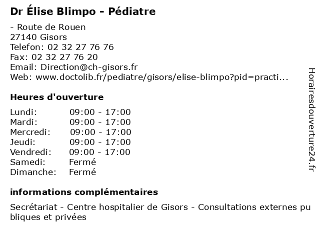 1 Dr Bassam Richet - Pédiatre (Distance: 0,00 km) - Route de Rouen, 27140 Gisors bassam, consultation, docteur, dr, med, médecin, médecine, pédiatre, richet, secrétariat, traitement 2 Dr Julie Gaspard - Pédiatre (Distance: 0,65 km) - Route de Rouen, 27140 Gisors consultation, docteur, dr, gaspard, julie, med, médecin, pédiatre, traitement 3 Dr Élise Druais - Chirurgien dentiste (Distance: 54,48 km) 21 rue de la Libération, 92500 Rueil-Malmaison chirurgien, dentaire, dentiste, dr, druais, implantologie, parodontologie, élise 4 Maître Élise Darras - Avocate (Distance: 56,40 km) 1-2 Place des Saisons, 92400 Courbevoie avocate, avocats, cabinet, conseils, contentieux, darras, juridique, justice, litiges, maître, services, élise 5 Maître Élise Taieb - Avocate (Distance: 59,70 km) 21 avenue Victor Hugo, 75116 Paris avocate, avocats, cabinet, conseils, contentieux, juridique, justice, litiges, maître, services, taieb, élise 6 Maître Élise Graziani - Avocate (Distance: 59,70 km) 174 avenue Victor Hugo, 75116 Paris avocate, avocats, cabinet, conseils, contentieux, graziani, juridique, justice, litiges, maître, services, élise |