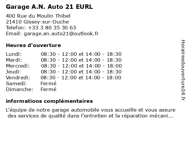 Termes de recherche pour Garage A.N. Auto 21 EURL:garage, auto, 21, eurl, a.n. |