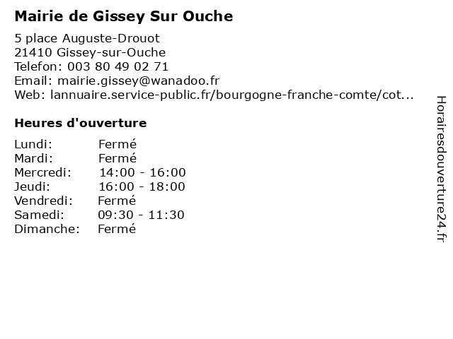 Termes de recherche pour Mairie de Gissey Sur Ouche:sur, de, ouche, mairie, central, commune, gissey, gouvernement, nra |