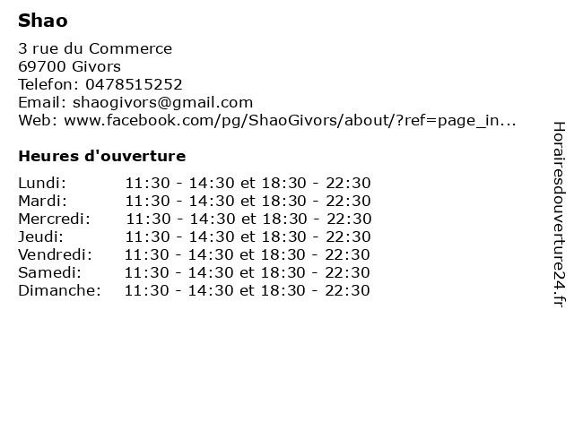 Samedi | 11:30-14:30 et 18:30-22:30 |