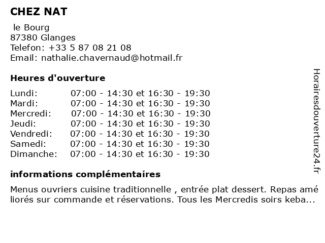 | Mardi | 07:00-14:30 et 16:30-19:30 |