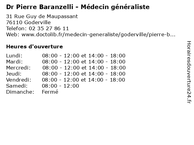 | Lundi | 08:00-12:00 et 14:00-18:00 |