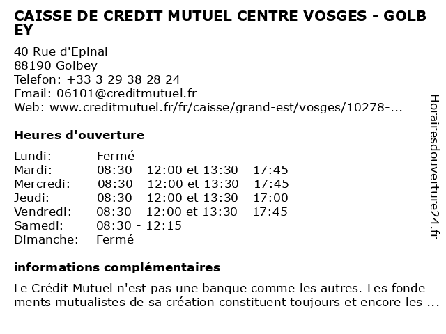 Termes de recherche pour CAISSE DE CREDIT MUTUEL CENTRE VOSGES - GOLBEY:de, vosges, centre, crédit, mutuel, caisse, golbey |