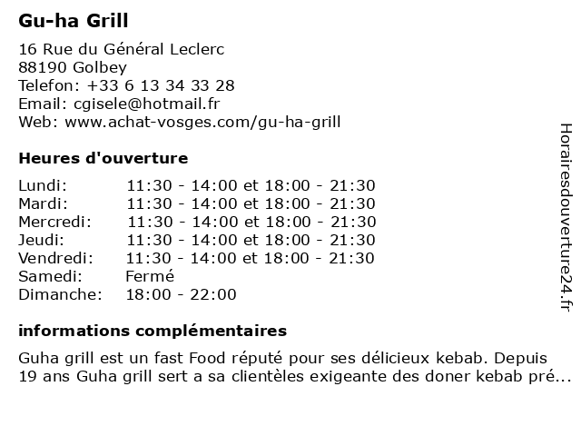 | Mardi | 11:30-14:00 et 18:00-21:30 |