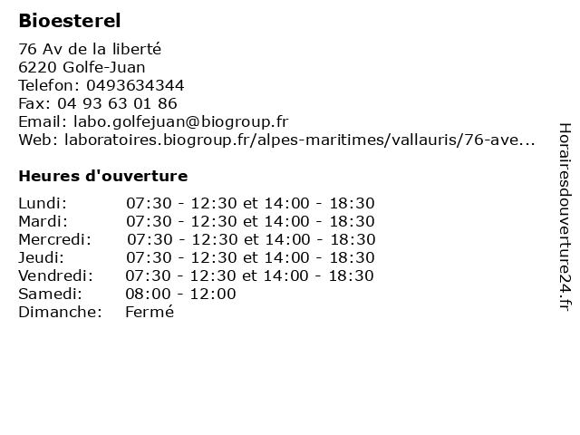 1 Bioesterel (Distance: 3,57 km) 1160 Route de Grasse, 06600 Antibes bioesterel, biologique, laborataire, santé, services 2 Bioesterel (Distance: 3,95 km) 27 Av Philippe Rochat, 06600 Antibes bioesterel, biologique, laborataire, santé, services 3 Bioesterel (Distance: 4,17 km) 24 Avenue Robert Soleau, 06600 Antibes bioesterel, bureau, consultation, dr, maladie, med, médecin, médecine, pratique, thérapie, traitement 4 Bioesterel (Distance: 4,48 km) 3 Rue des Michels, 06110 Le Cannet bioesterel, biologique, laborataire, santé, services 5 Bioesterel (Distance: 4,78 km) 11 Bd Ferrage, 06400 Cannes bioesterel, biologique, laborataire, santé, services 6 Bioesterel (Distance: 5,69 km) 44 Avenue Franklin Roosevelt, 06110 Le Cannet bioesterel, biologique, laborataire, santé, services |