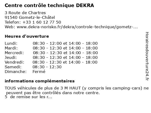 Description de l'entreprise :Préparer votre contrôle techniquePour préparer votre contrôle technique dans notre centre DEKRA de Gometz-la-Ville, vous pouvez vérifier en amont différents points comme les pneumatiques, la visibilité, le niveau d'huile ou encore l'habitacle. Pour tout savoir, consultez notre vidéo. Voir l'offre |