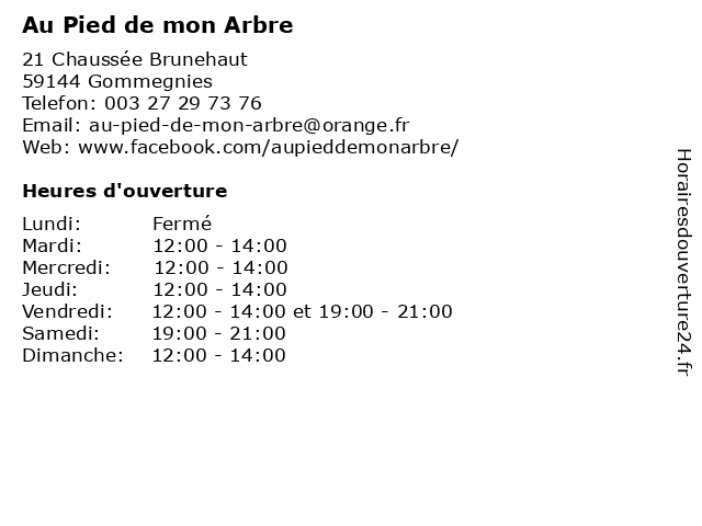 | Lundi | Fermé |