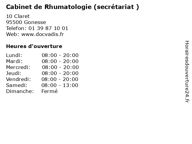 Termes de recherche pour Cabinet de Rhumatologie (secrétariat ):de, cabinet, santé, secretariat, docteur, médecins, consultation, rhumatologie |