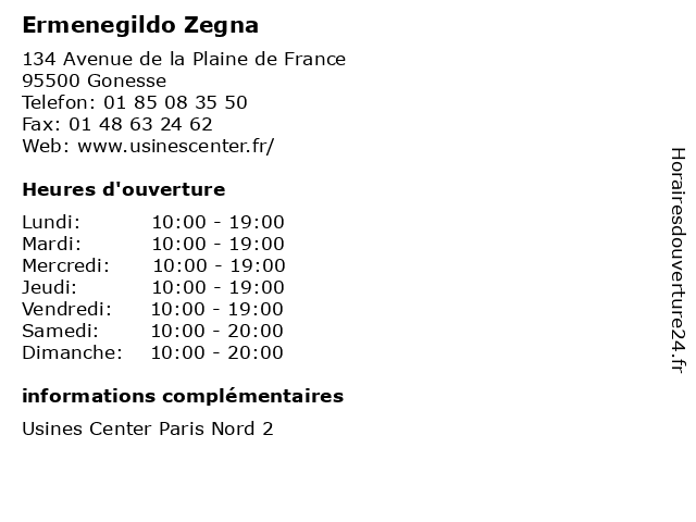 1 Zegna Corner (Galeries Lafayette) (Distance: 16,78 km) 40 Boulevard Haussmann, 75009 Paris corner, galeries, lafayette, magasin de chaussures, magasin de lunettes de soleil, magasin de vêtements sur-mesure, magasin d’accessoires de mode, maroquinerie, mode, zegna 2 Ermenegildo Zegna (Printemps) (Distance: 16,98 km) 64 Boulevard Haussmann, 75002 Paris accessoires, ermenegildo, mode, printemps, vetements, zegna 3 Ermenegildo Zegna Chaussures (Printemps) (Distance: 16,98 km) 64 Boulevard Haussmann, 75002 Paris accessoires, chaussures, ermenegildo, mode, printemps, vetements, zegna 4 Sant Honorè Zegna Boutique Paris (Distance: 17,51 km) 362/364 Rue sant-honoré, 75001 Paris boutique, honorè, magasin de chaussures, magasin de lunettes de soleil, magasin de vêtements sur-mesure, magasin d’accessoires de mode, maroquinerie, mode, paris, sant, zegna 5 Zegna Boutique (Distance: 18,78 km) 39 Avenue George V, 75008 Paris boutique, magasin de chaussures, magasin de lunettes de soleil, magasin de vêtements sur-mesure, magasin d’accessoires de mode, maroquinerie, mode, zegna 6 Ermenegildo Zegna (Le Bon Marché) (Distance: 19,00 km) 24 Rue de Sèvres, 75007 Paris accessoires, bon, ermenegildo, le, marché, mode, vetements, zegna |