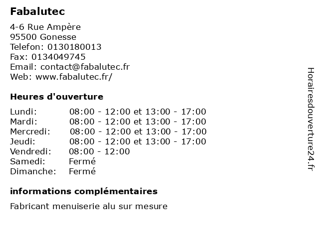 Lundi | 08:00-12:00 et 13:00-17:00 |