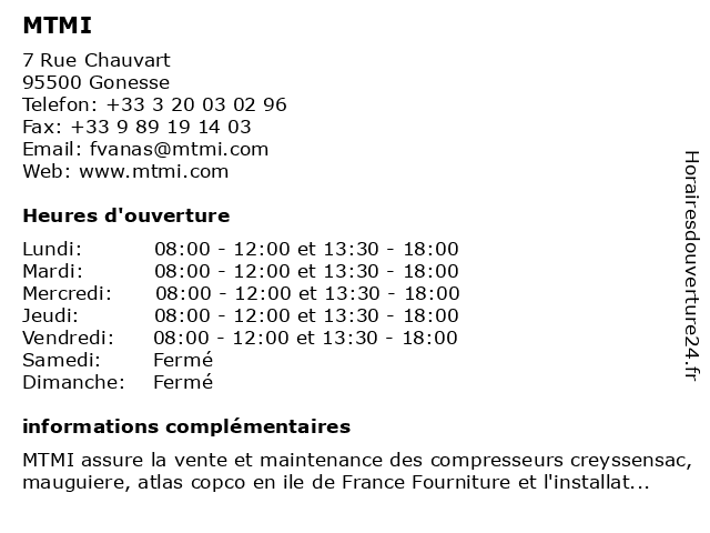 Lundi | 08:00-12:00 et 13:30-18:00 |