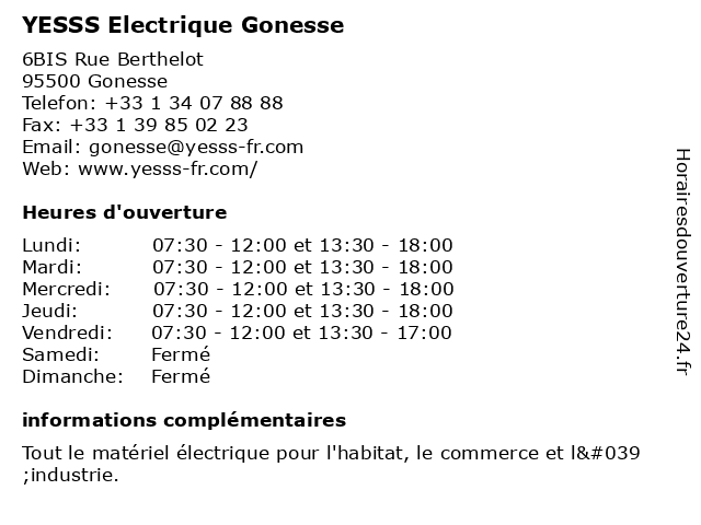 Termes de recherche pour YESSS Electrique Gonesse:gonesse, fils, securite, electrique, outillage, cables, installation, yesss, eclairage, appareillage, chauffage et climatisation, gaines et conduits, matériel électrique |