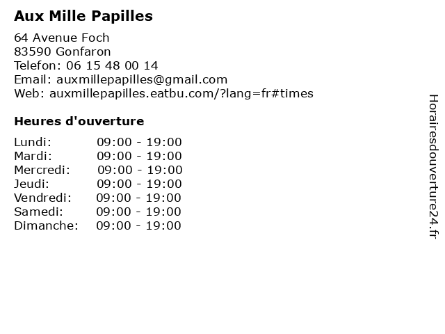 1 Mille et Une Gommettes (Distance: 17,02 km) . ZAC de Fray Redon, 83136 Rocbaron et, gommettes, journaux, livres, mille, papeteries, presse, une 2 Les Mille Et Une Portes (Distance: 19,32 km) Zola 9 Place Emile, 83570 Carces magasins, marchandises, mille, occasion, portes 3 La Malle Aux Parfums (Distance: 19,70 km) 17 Avenue Maréchal Joffre, 83390 Cuers aux, la, malle, parfums 4 Les Papilles Gustatives (Distance: 20,64 km) 19 Rue Du Marechal Foch, 83250 La Londe Les Maures gustatives, papilles, restaurants 5 La Table (Distance: 24,10 km) 1019 Route Departementale 554, 83210 Sollies Toucas papilles, restaurants, table 6 LES PLEINES PAPILLES (Distance: 32,18 km) 141 Avenue Jean Moulin, 83220 Le Pradet ateliers enfants, chef cuisine, chef cuisine tarif, cours de cuisine, cuisine à domicile, les, papilles, pleines, traiteur à domicile |