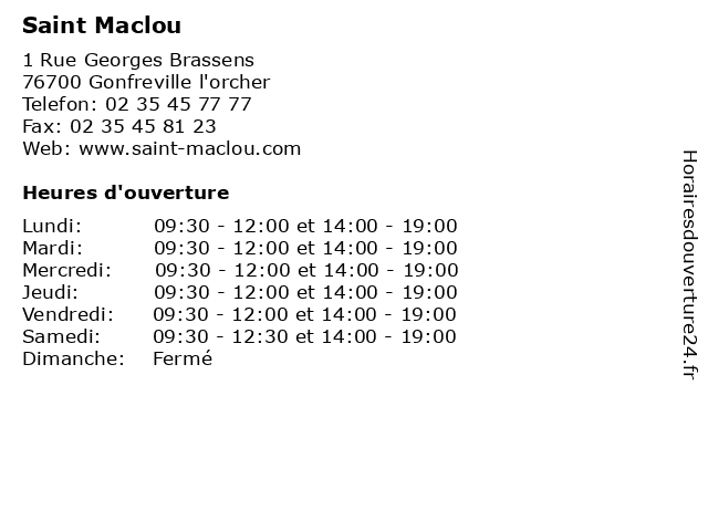 | Lundi | 09:30-12:00 et 14:00-19:00 |