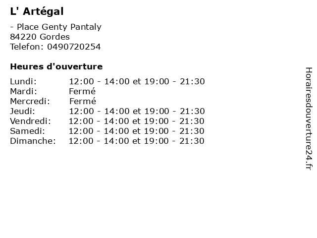Termes de recherche pour L' Artégal:restaurant, alimentation, brasserie, terrasse, l', parking, artegal |