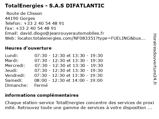 Termes de recherche pour TotalEnergies - S.A.S DIFATLANTIC:total, s.a.s, gas station, station service, difatlantic, tankstelle, totalenergies |