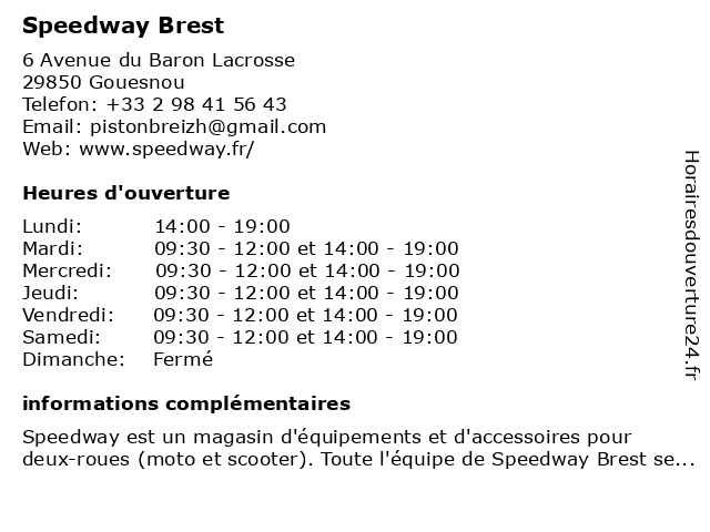 | Samedi | 09:30-12:00 et 14:00-19:00 |