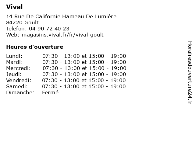 1 Vival (Distance: 6,71 km) 113 Avenue De La Burlière, 84220 Roussillon supermarché, supérette, vival, épicerie 2 Vival (Distance: 11,07 km) 35 Rue de la Plantade, 84400 Gargas alimentation, distributeur alimentaire, supermarché, supérette, vival, épicerie 3 Vival (Distance: 14,29 km) D100 Route du Stade - Hameau Saint Joseph, 84800 Lagnes alimentation, distributeur alimentaire, superette, supermarché, vival, épicerie 4 Vival (Distance: 15,97 km) 6 Rue de la République, 84800 L'Isle-Sur-La-Sorgue alimentation, fruits, légumes, petit, supérette, vival, épicerie 5 Vival (Distance: 19,35 km) 319 Route De Cavaillon, 84740 Velleron supermarché, supérette, vival, épicerie 6 Vival By Casino (Distance: 11,78 km) 4 Rue de l'Église, 84360 Mérindol alimentation, by, casino, distributeur alimentaire, supermarché, supérette, vival, épicerie |