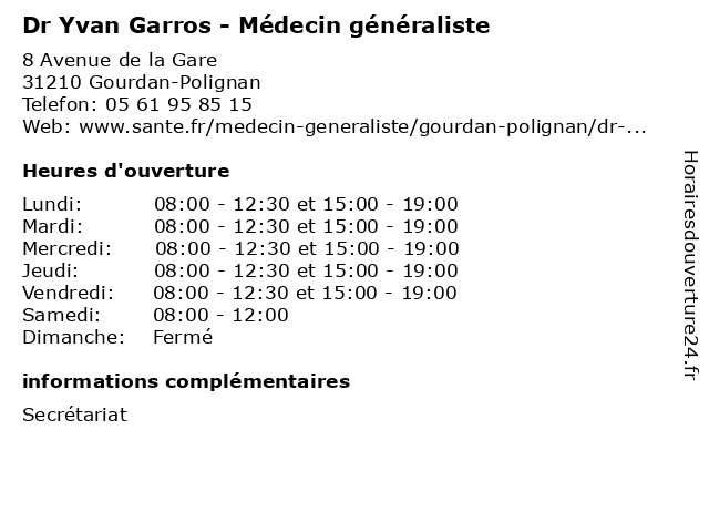 | Mercredi | 08:00-12:30 et 15:00-19:00 |