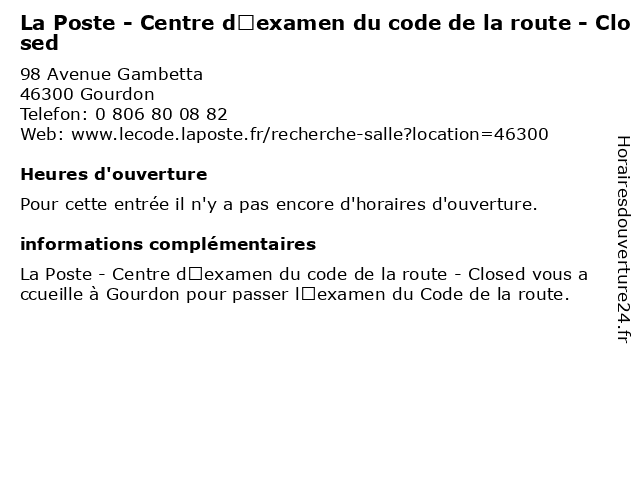 | Appeler La Poste - Centre d’examen du code de la route - Closed | |