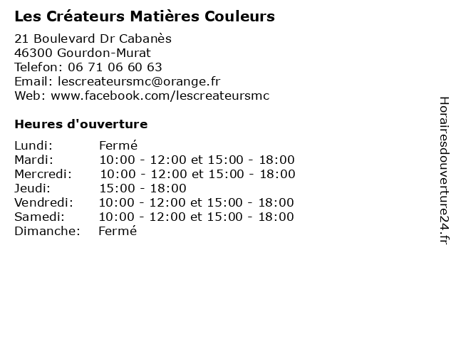 | Mercredi | 10:00-12:00 et 15:00-18:00 |