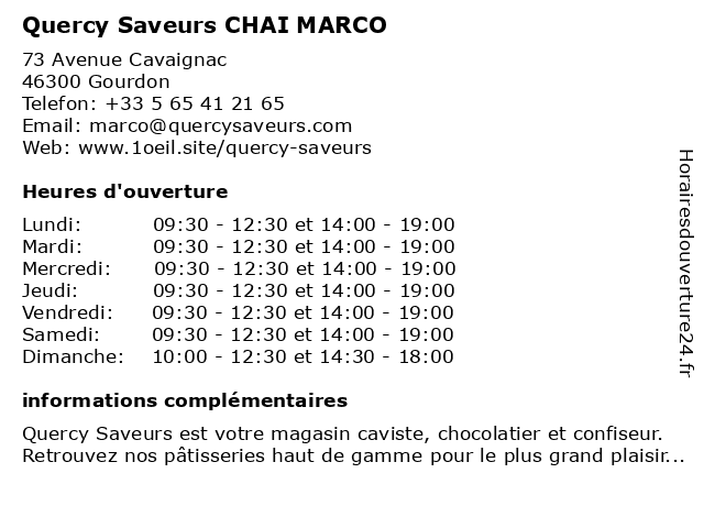 | Samedi | 09:30-12:30 et 14:00-19:00 |