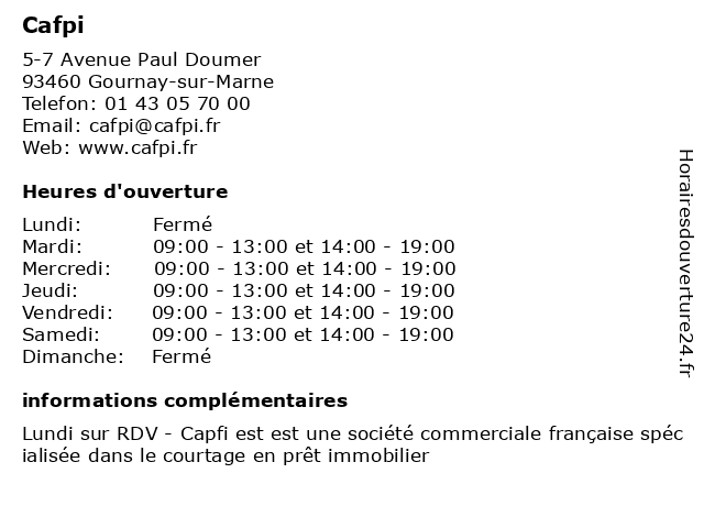 Mercredi | 09:00-13:00 et 14:00-19:00 |