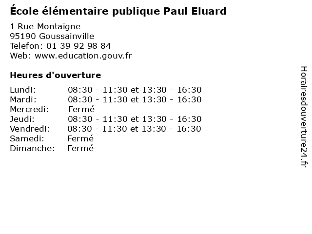 | Mardi | 08:30-11:30 et 13:30-16:30 |