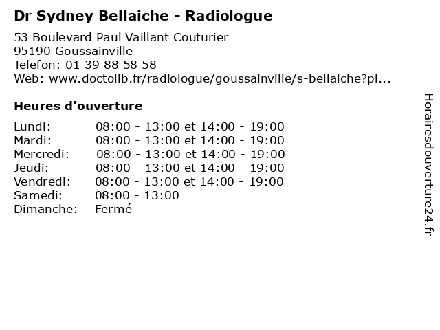 | Lundi | 08:00-13:00 et 14:00-19:00 |