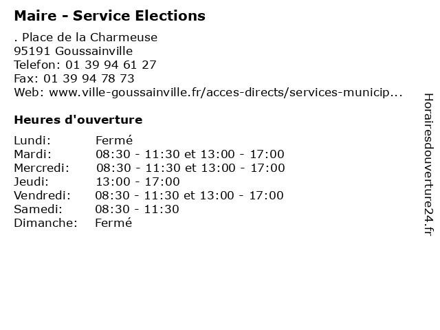 | Mercredi | 08:30-11:30 et 13:00-17:00 |