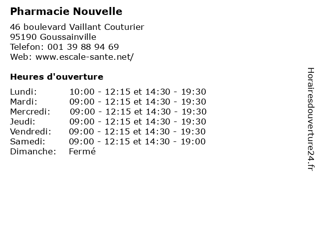 Samedi | 09:00-12:15 et 14:30-19:00 |